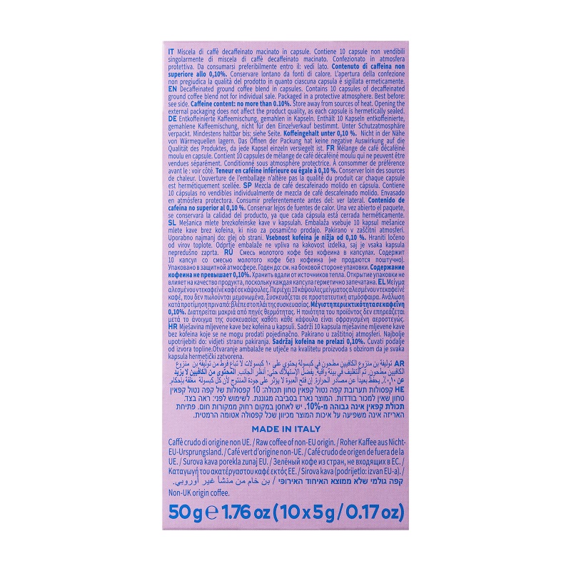 Hausbrandt Nespresso Decaffeinato – это капсулы, использующиеся для приготовления любимого бодрящего напитка с использованием капсульной кофемашины. Купаж станет истинным открытием для тех кофеманов, кому не рекомендован напиток в его классической вариации. Отсутствие кофеина никоим образом не сказывается на потрясающе интенсивном и насыщенном вкусе — это все тот же прекрасный итальянский кофе с его неподдельным очарованием.